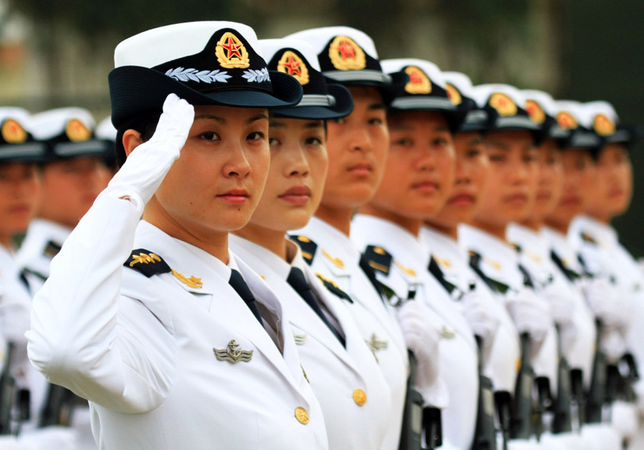 5月5日,海軍陸戰(zhàn)隊(duì)女隊(duì)員接受檢閱。圖片來源:新華網(wǎng) 查春明攝