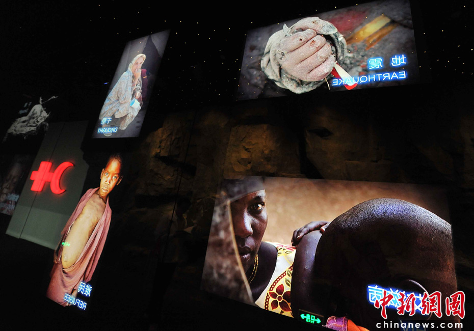 5月8日是上海世博會(huì)的紅十字會(huì)和紅新月會(huì)館榮譽(yù)日,兩會(huì)在簡(jiǎn)樸如醫(yī)療帳篷的館里,運(yùn)用聲光電展示大量紀(jì)實(shí)圖片,于大災(zāi)大難中顯示救死扶傷的大愛,可歌可泣。這兩個(gè)鮮紅標(biāo)志的人道救援組織,一百多年來遵循著堅(jiān)定不移的宗旨——“經(jīng)歷戰(zhàn)爭(zhēng)與災(zāi)難的黑暗,我們更需要人道的光芒”。世界的未來,還將依靠它紅色的光明,去驅(qū)散天災(zāi)人禍的陰影。中新社發(fā) 賈國(guó)榮 攝