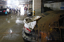 5月10日,廣州中?党堑叵峦\噲鲈馑钠嚱K于重新出水。受5月7日的大雨影響,廣州市東圃地區(qū)的中海康城的地下停車庫發(fā)生嚴(yán)重的水浸。經(jīng)過4天日夜不斷地抽水,5月10號上午,地下車庫里面的水終于干了。4天來一直轟鳴的水泵昨日終于停了下來。早晨7時許,眾車主陸續(xù)來到車庫,370多臺車橫七豎八排開,幾只塘虱在淤泥里挪動著。在拖車出庫的時候,不少車主淚流滿面。