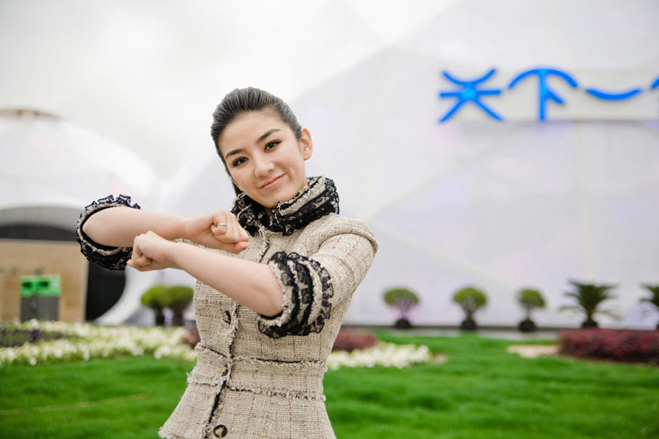 黃奕示范世博標(biāo)準(zhǔn)手勢演繹“EXPO”