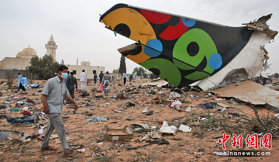 5月12日,一架從南非起飛的利比亞航班在利比亞首都的黎波里機(jī)場(chǎng)墜毀,機(jī)上103名乘客和機(jī)組人員遇難。圖片來(lái)源:中國(guó)新聞網(wǎng)