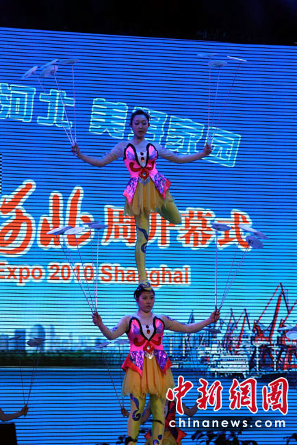 5月14日,上海世博會“河北活動周”在寶鋼大舞臺啟幕,戰(zhàn)鼓、旱船、拉花、草編、石雕、年畫、雜技、皮影戲……燕趙大地的傳統(tǒng)絕活一一登場。“河北活動周”自14日持續(xù)至18日,將圍繞“京畿神韻”的主線,向世界展示河北省的經(jīng)濟和藝術(shù)魅力,是繼直轄市北京、天津之后,第一個由省份在世博會上舉辦的活動周。中新社記者 殷春永 攝