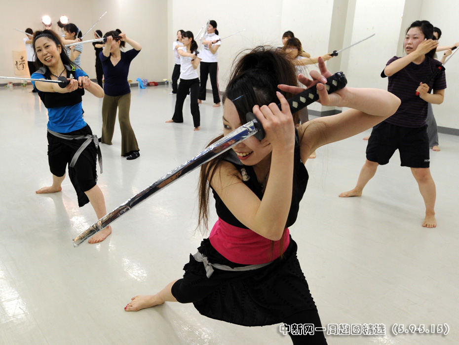 近日,在日本東京,眾多白領(lǐng)女性學(xué)起了日本傳統(tǒng)的武士刀,用來減壓。圖片來源:中國新聞網(wǎng)>>點擊觀看詳細(xì)內(nèi)容