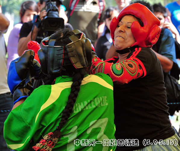 5月13日,秘魯利馬高地舉辦的傳統(tǒng)食品博覽會上,兩名安第斯農(nóng)民婦女穿著象征秘魯和玻利維亞的裙子同臺搏擊妙趣橫生。圖片來源:中國新聞網(wǎng)>>點擊觀看詳細(xì)內(nèi)容