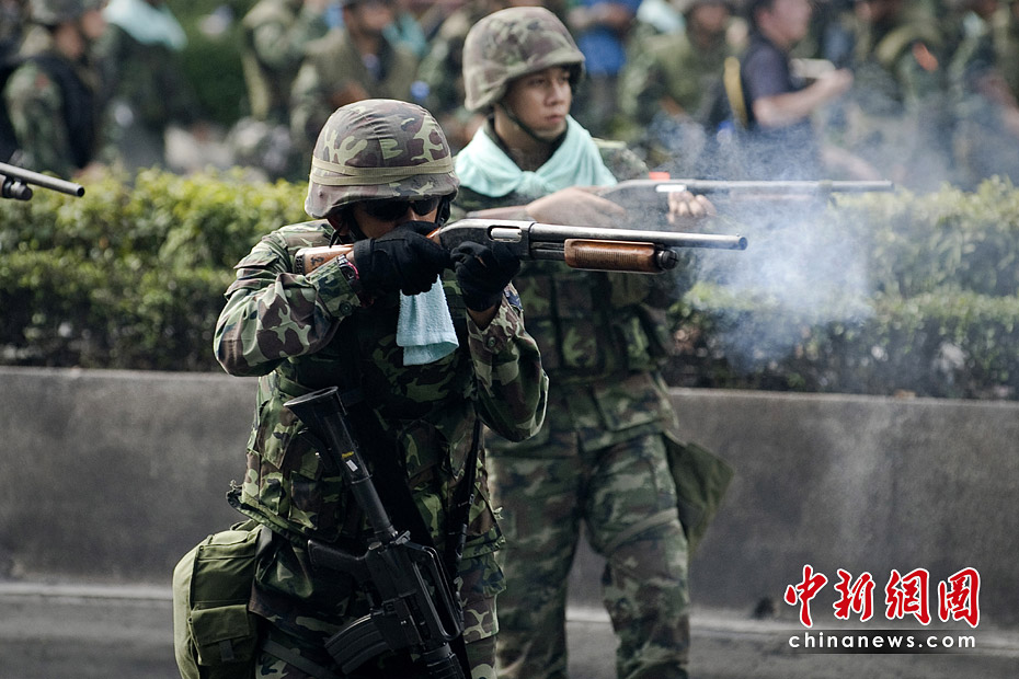 泰國政府軍和反政府示威者5月14日深夜在曼谷爆發(fā)嚴重暴力沖突。曼谷緊急醫(yī)療機構(gòu)15日稱,截止當(dāng)?shù)貢r間早晨6時,沖突已導(dǎo)致16人死亡,至少141受傷,傷者中包括3名外國人。圖片來源:中國新聞網(wǎng)