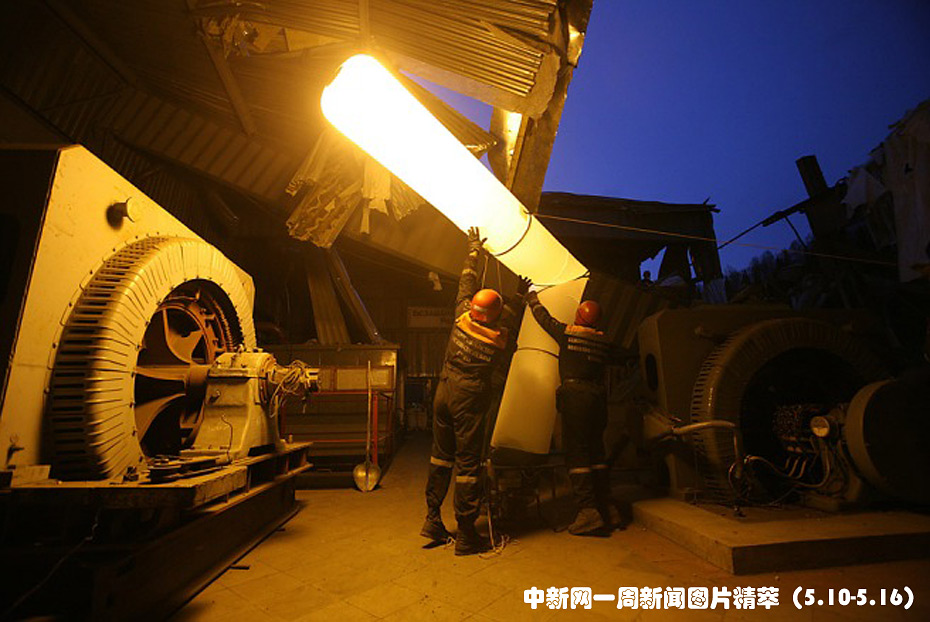 周一(10日),在俄羅斯的梅日杜列琴斯克地區(qū),工作人員在被煤礦爆炸損毀的大樓內(nèi)安裝照明設(shè)施。上周發(fā)生的礦難導致至少32人遇難,58人被困于地下。