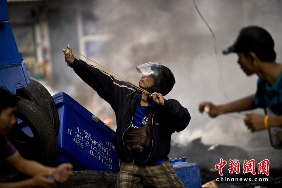 泰國軍隊和反政府的“紅衫軍”16日繼續(xù)在曼谷的多處地點對峙,槍聲和爆炸聲不時響起,曼谷的部分街道已成為“戰(zhàn)區(qū)”。泰國急救醫(yī)療部門17日表示,泰國軍警與反政府“紅衫軍”示威民眾3天來在曼谷街頭爆發(fā)的沖突,死亡人數(shù)已經(jīng)上升到35人。圖片來源:中國新聞網(wǎng)