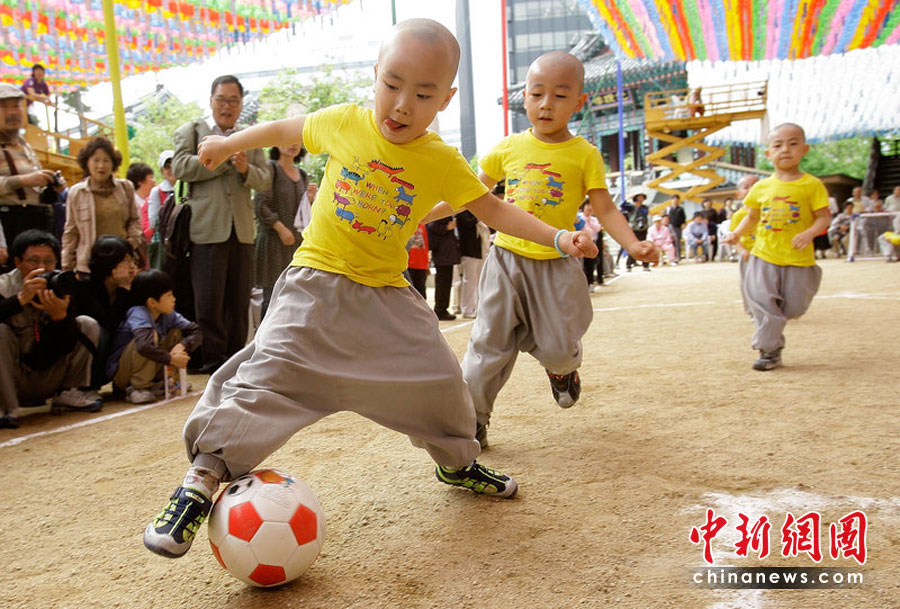 2010年5月15日,韓國(guó)首爾曹溪寺院舉行了兒童足球賽,一群四五歲的孩子和小和尚參加了這場(chǎng)足球友誼賽。這場(chǎng)比賽是佛誕節(jié)活動(dòng)的一部分,也是為了迎接2010世界杯足球賽的到來(lái)。Chung Sung-Jun