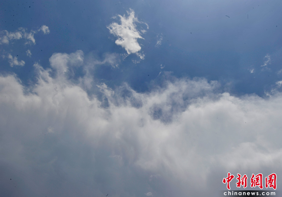 5月18日16時(shí)許,伴隨陣陣?yán)茁暰┏峭唤荡笥,降雨過后東部天空依然籠罩著烏云,而西邊卻已放晴。中新網(wǎng)記者 金碩 攝
