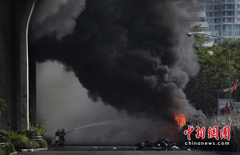 19日,發(fā)起驅(qū)散行動(dòng)的泰國(guó)軍方突破了反政府“紅衫軍”示威者在曼谷市中心所筑路障,進(jìn)入其營(yíng)地內(nèi),雙方爆發(fā)槍戰(zhàn)。目擊者稱,已有至少9人受傷,多數(shù)是被槍擊中。