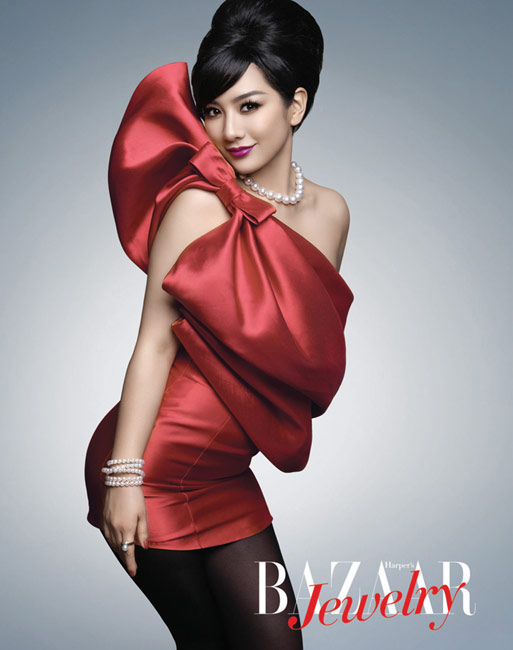 高高蓬起的發(fā)髻,剪裁流暢的禮服,還有頸上那串珍珠,沒有刺眼的光芒,沒有絢麗的色彩,典雅且華麗著。如此妝容會讓你想起老上海的名媛佳麗,或是奧黛麗赫本的回眸一笑,那些雋永的美麗。然而當(dāng)女主角變成黃奕,優(yōu)雅之外更多的是驚喜。亮紫、淺棕、朱紅,這些原本與經(jīng)典無關(guān)的色彩,在她身上完美的契合,典雅之外的俏皮,精彩之后的永恒,也許,黃奕拍攝的不僅僅是中國頂級的一線雜志《芭莎珠寶》的封面大片,更是她別具一格的生活姿態(tài)。