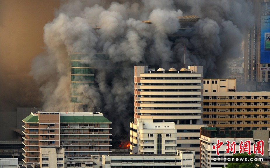 泰國(guó)軍方19日清場(chǎng),希望將陷入內(nèi)戰(zhàn)邊緣的曼谷拯救出來(lái),雖然紅衫軍節(jié)節(jié)敗退,但有激進(jìn)分子未肯罷休,四處放火,電視臺(tái)、股票交易所、電力公司、幾間銀行、商場(chǎng)戲院都遭殃,商場(chǎng)和便利店亦成為搶掠目標(biāo)。據(jù)報(bào)曼谷有27處地方起火,泰國(guó)最大的商場(chǎng)Central World、Siam Square和Siam Paragon三大購(gòu)物中心被縱火,其中Central World燒通頂,據(jù)報(bào)快將倒塌。