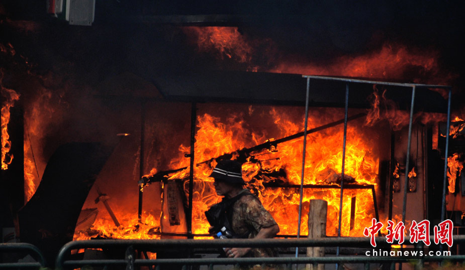 泰國軍方19日清場,希望將陷入內(nèi)戰(zhàn)邊緣的曼谷拯救出來,雖然紅衫軍節(jié)節(jié)敗退,但有激進(jìn)分子未肯罷休,四處放火,電視臺(tái)、股票交易所、電力公司、幾間銀行、商場戲院都遭殃,商場和便利店亦成為搶掠目標(biāo)。據(jù)報(bào)曼谷有27處地方起火,泰國最大的商場Central World、Siam Square和Siam Paragon三大購物中心被縱火,其中Central World燒通頂,據(jù)報(bào)快將倒塌。