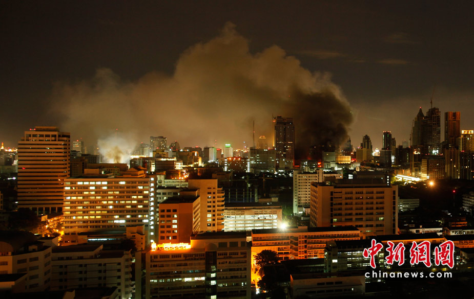 泰國軍方19日清場,希望將陷入內(nèi)戰(zhàn)邊緣的曼谷拯救出來,雖然紅衫軍節(jié)節(jié)敗退,但有激進(jìn)分子未肯罷休,四處放火,電視臺、股票交易所、電力公司、幾間銀行、商場戲院都遭殃,商場和便利店亦成為搶掠目標(biāo)。據(jù)報曼谷有27處地方起火,泰國最大的商場Central World、Siam Square和Siam Paragon三大購物中心被縱火,其中Central World燒通頂,據(jù)報快將倒塌。