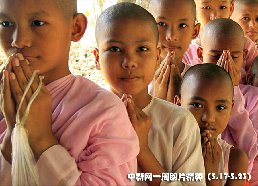 近日在緬甸仰光,孤兒們在寺院內(nèi)排起長隊(duì)集體接受捐贈食物。大約300多名孤兒住在這座寺院內(nèi)。