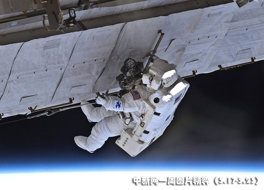 5月17日,“亞特蘭蒂斯”號(hào)航天飛機(jī)宇航員加雷特·賴斯曼和史蒂夫·鮑恩進(jìn)行了與國際空間站對(duì)接后的首次太空行走。