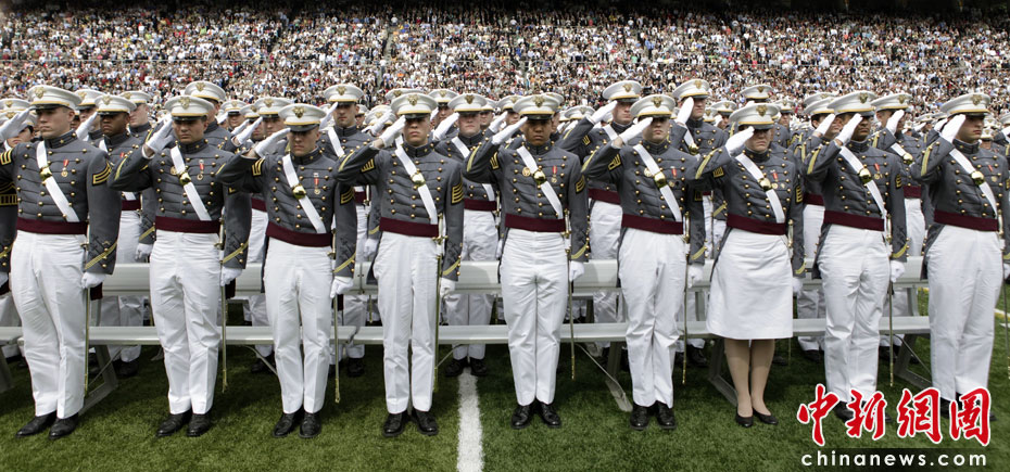5月22日,美國(guó)紐約州北部哈德遜河西岸西點(diǎn)鎮(zhèn)的西點(diǎn)軍校舉行2010年度畢業(yè)典禮,美國(guó)總統(tǒng)奧巴馬出席典禮。本屆共有1002名學(xué)員獲得理學(xué)學(xué)士學(xué)位,并被授予陸軍少尉軍銜。圖片來源:中國(guó)新聞網(wǎng)