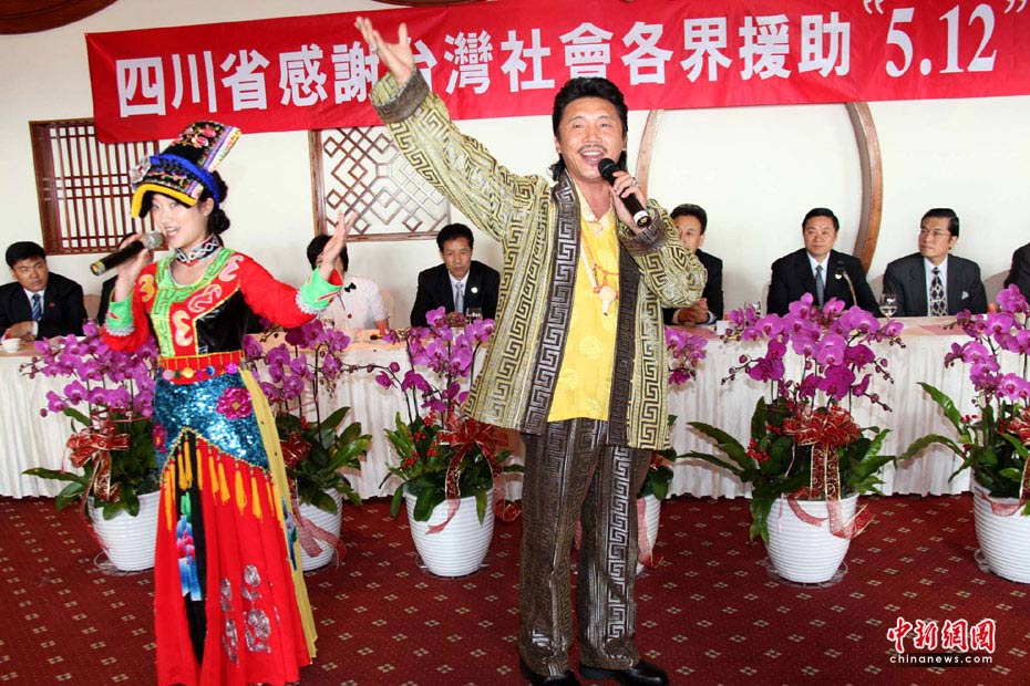 5月24日下午,“四川省感謝臺灣社會各界援助‘5.12’地震災(zāi)區(qū)見面會”在臺北舉行,2名四川名歌手獻唱,感謝臺灣同胞的大愛。 中新網(wǎng)記者董會峰攝