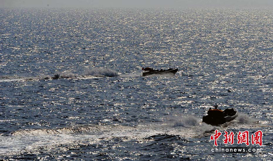2艘小艇協(xié)同前出,高速抵近可疑目標。江山 攝