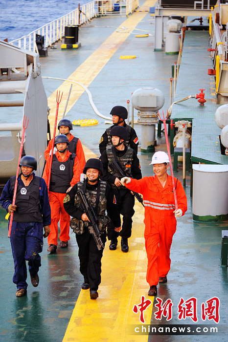 與特戰(zhàn)隊員一起巡邏,船員們輕松了許多。江山 攝