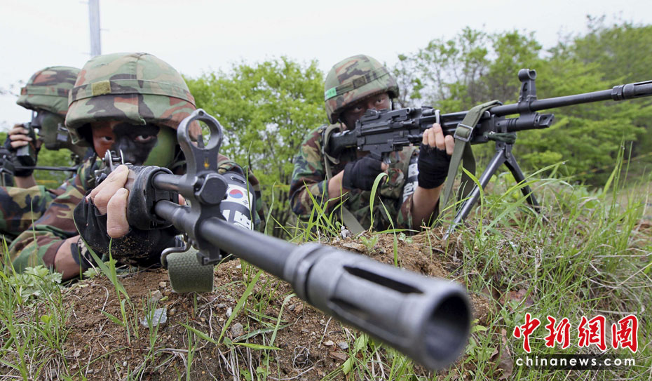 5月24日,韓國軍隊(duì)在靠近韓朝非軍事區(qū)的揚(yáng)口舉行軍事演習(xí)。圖片來源:中國新聞網(wǎng)