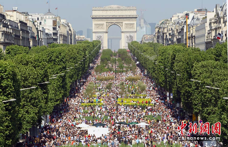 5月24日,法國總統(tǒng)薩科齊和妻子布呂尼參觀在法國巴黎舉行的“自然首都”展。該項(xiàng)展覽是由街頭藝術(shù)家加德·魏爾聯(lián)手法國“青年農(nóng)民協(xié)會(huì)”和林業(yè)協(xié)會(huì)共同發(fā)起的的,將百余種農(nóng)作物、樹木和動(dòng)物“齊聚”法國首都巴黎的香榭麗舍大街,令這條“香街”變身“綠色的自然世界”。圖片來源:中國新聞網(wǎng)