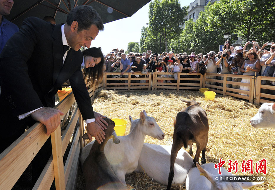5月24日,法國(guó)總統(tǒng)薩科齊和妻子布呂尼參觀在法國(guó)巴黎舉行的“自然首都”展。該項(xiàng)展覽是由街頭藝術(shù)家加德·魏爾聯(lián)手法國(guó)“青年農(nóng)民協(xié)會(huì)”和林業(yè)協(xié)會(huì)共同發(fā)起的的,將百余種農(nóng)作物、樹木和動(dòng)物“齊聚”法國(guó)首都巴黎的香榭麗舍大街,令這條“香街”變身“綠色的自然世界”。圖片來(lái)源:中國(guó)新聞網(wǎng)