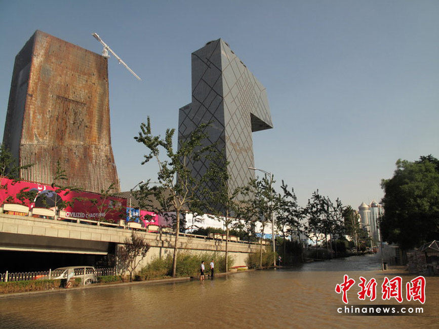 2010年5月25日下午4點半左右,北京京廣橋附近發(fā)生水管爆裂,水柱噴射到兩層樓高,流出的水已成河,造成東三環(huán)嚴重擁堵。沈軍 攝