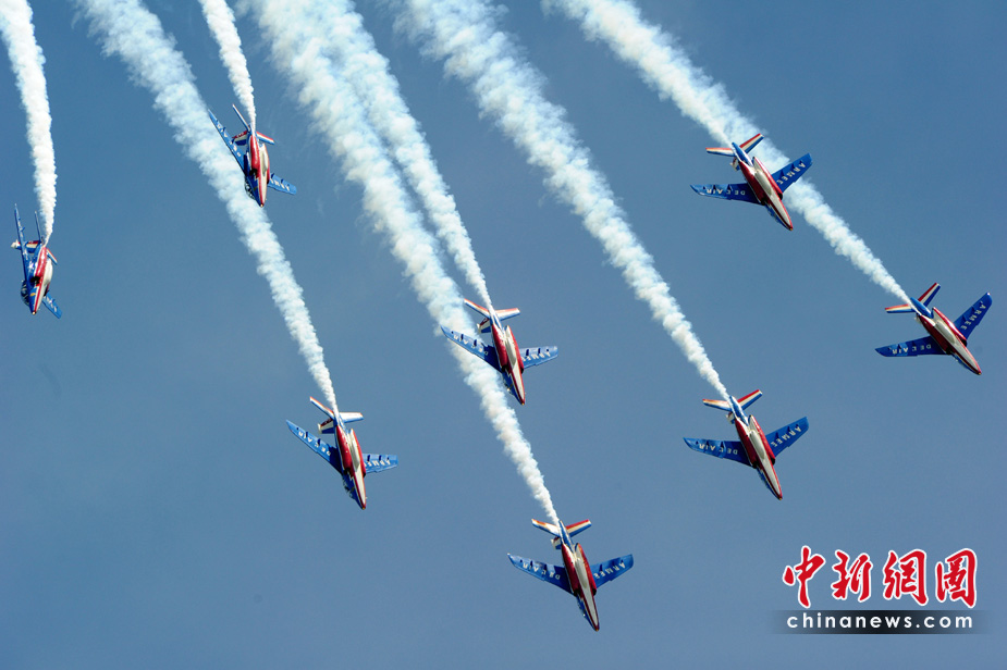 5月25日,法國巡邏兵特技飛行表演隊(duì)在普羅旺斯地區(qū)進(jìn)行驚險(xiǎn)的飛行表演。