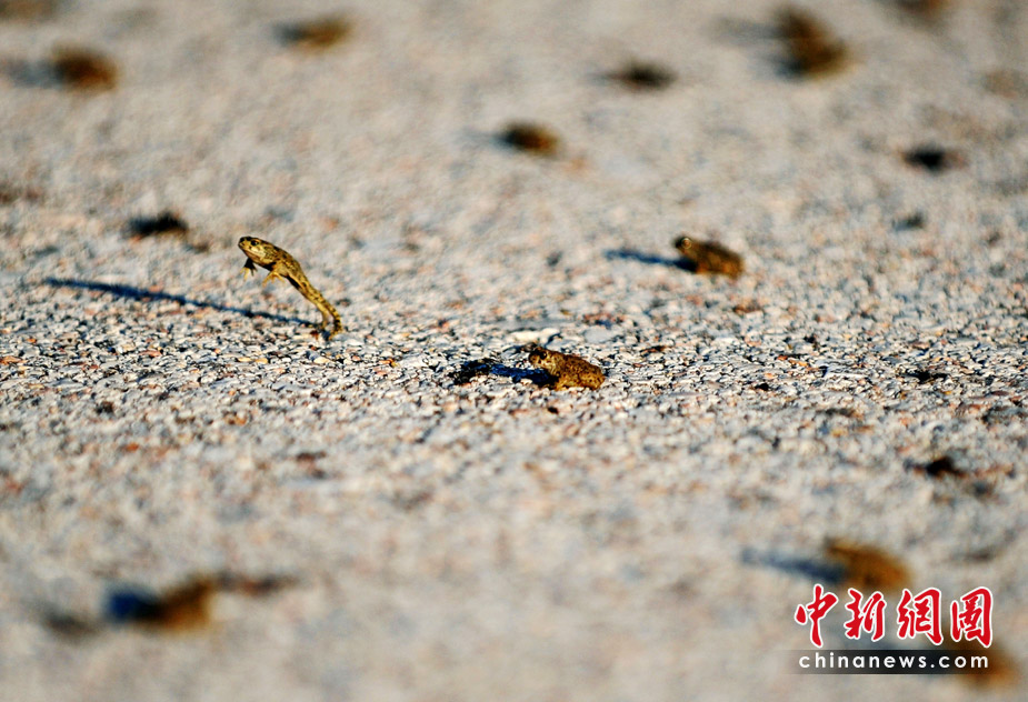 希臘數(shù)百萬(wàn)只青蛙“霸占”高速公路