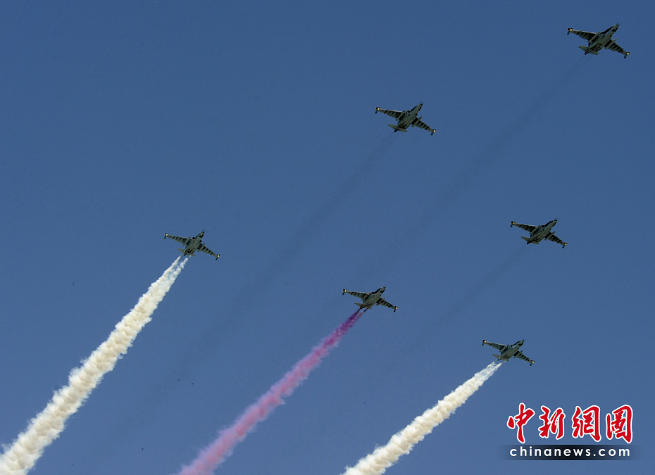 5月26日,在格魯吉亞首都第比利斯,受閱部隊從議會大廈前走過。當日,格魯吉亞在第比利斯舉行慶祝格獨立日閱兵典禮,格總統(tǒng)薩卡什維利在議會大廈前檢閱軍隊并發(fā)表演講。圖片來源:中國新聞網