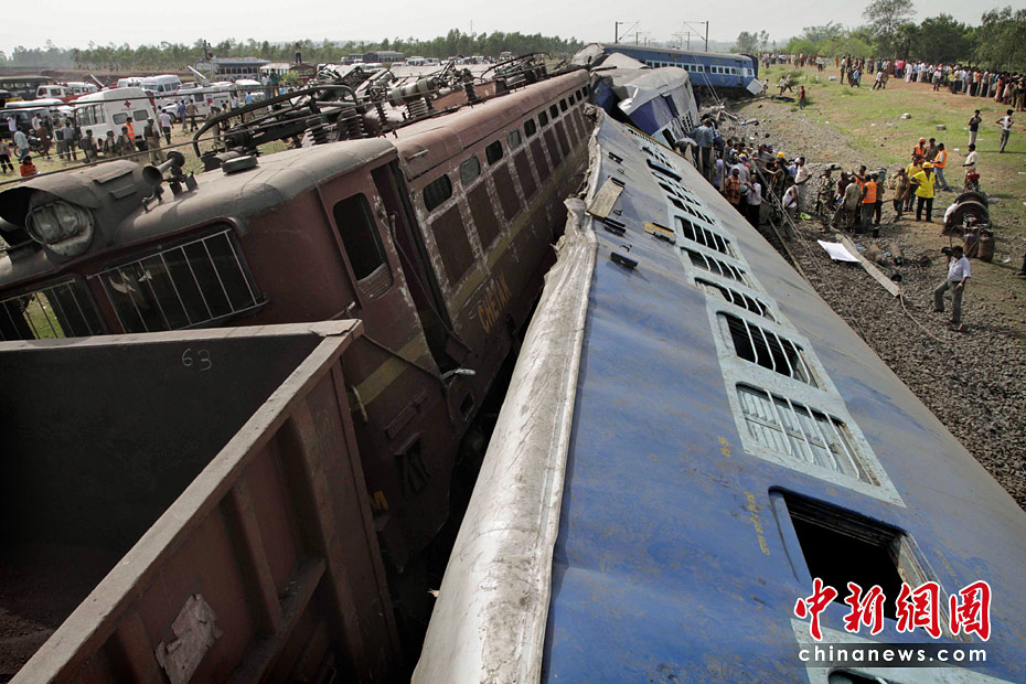當(dāng)?shù)貢r間5月28日,印度一列特快列車在東部西孟加拉邦的西米德納布爾遭反政府武裝襲擊脫軌,造成百余人死傷。圖片來源:中國新聞網(wǎng)