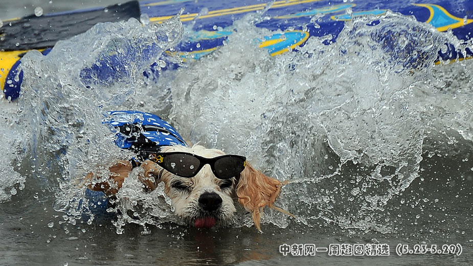 5月22日,美國加利福尼亞州圣迭戈舉行了一場妙趣橫生的狗狗沖浪比賽。圖片來源:中國新聞網(wǎng)>>點擊觀看詳細(xì)內(nèi)容