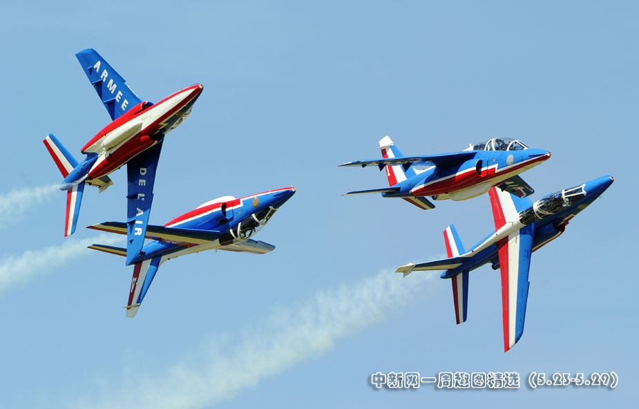 5月25日,法國巡邏兵特技飛行表演隊在普羅旺斯地區(qū)進行驚險的飛行表演。 圖片來源:中國新聞網(wǎng)>>點擊觀看詳細內(nèi)容