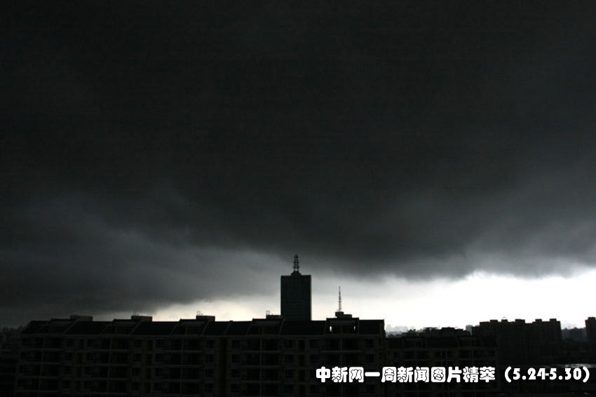 26(周三),一場(chǎng)暴風(fēng)雨即將來(lái)臨前的海南海口天空烏云翻滾,出現(xiàn)“烏云壓城 城欲摧”景觀。張茂 攝