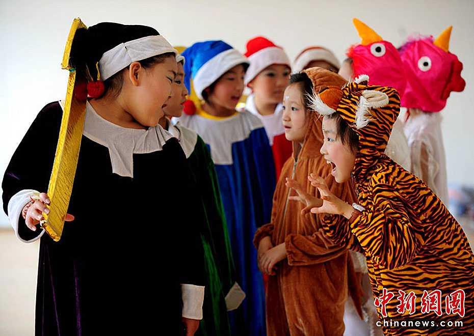 5月28日,遼寧沈陽,沈陽黃河大街小學(xué)的小朋友正在表演舞蹈描述自己的幸福的童年。紅一/CFP