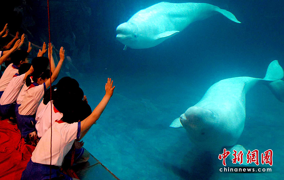 5月28日,北京海洋館從俄羅斯引進(jìn)的兩頭極地白鯨首次與游客見(jiàn)面。同時(shí),北京海洋館舉辦“攜手‘北極精靈’,共倡低碳生活”環(huán)保公益活動(dòng),呼吁人類(lèi)應(yīng)該保護(hù)海洋環(huán)境,保護(hù)珍惜物種。中新社發(fā) 張宇 攝