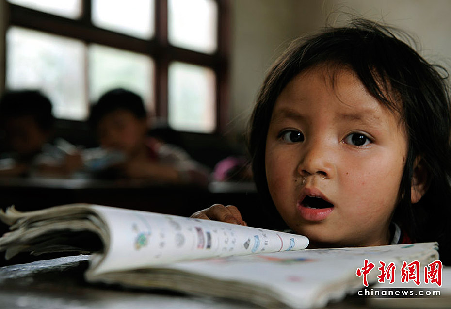 貴州省黔南州惠水縣楊茂村房前小學(xué)。一名年僅4歲就被送往學(xué)校讀書(shū)的一年級(jí)留守苗族娃娃。彭年/CFP
