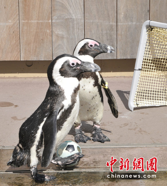 6月1日,在日本東京一家海洋館里,幾只企鵝“披掛上陣”,進(jìn)行了一場(chǎng)別開生面的足球賽,迎接世界杯。