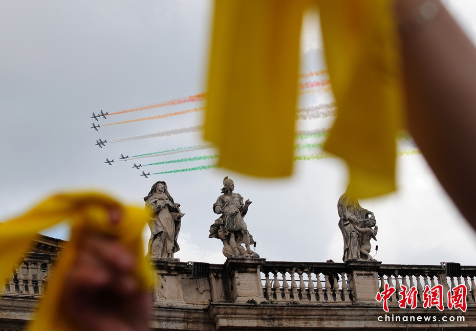 當?shù)貢r間6月2日,意大利首都羅馬舉行盛大儀式慶祝國慶日。意大利“三色箭”飛行表演隊在首都上空進行了飛行表演。