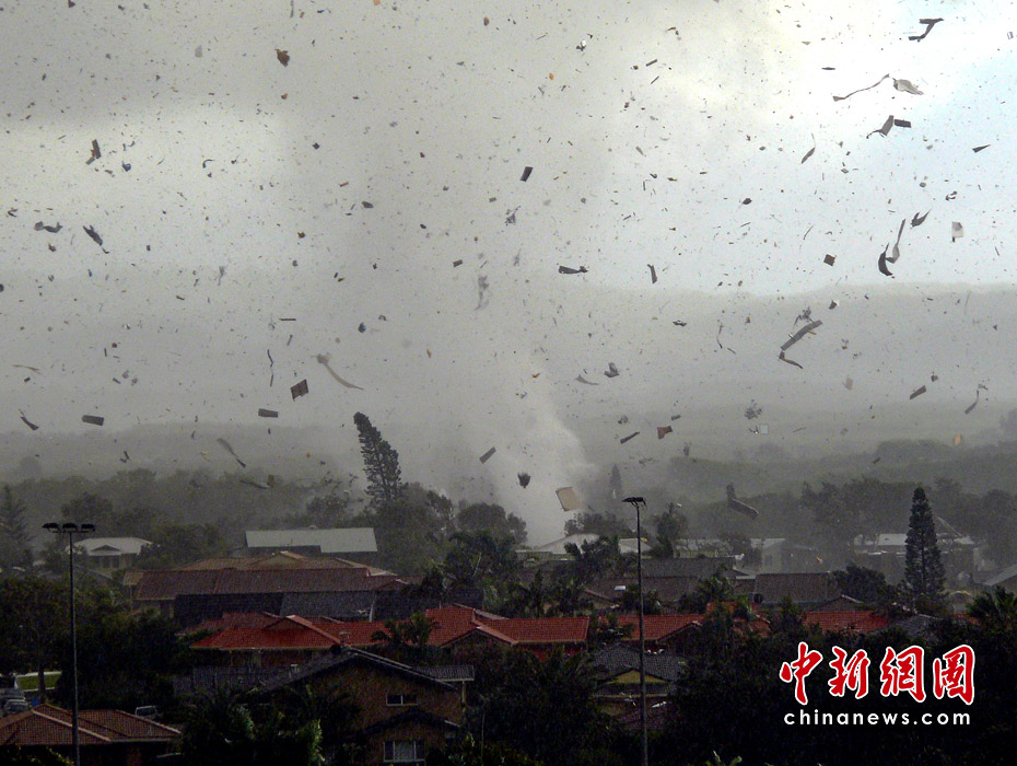 6月3日,澳大利亞新南威爾士州海濱城鎮(zhèn)倫諾克斯黑德遭到龍卷風(fēng)襲擊,大樹(shù)被連根拔起,屋頂被掀翻,重型拖車(chē)也被拋到半空中。數(shù)千所民居停電。一共有12所房屋在這場(chǎng)龍卷風(fēng)中被摧毀,6人受傷,傷勢(shì)不重。所幸沒(méi)有人員死亡的報(bào)告。圖片來(lái)源:中國(guó)新聞網(wǎng)