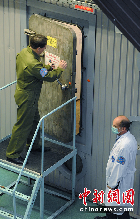 當(dāng)?shù)貢r(shí)間6月3日14時(shí),“火星-500”實(shí)驗(yàn)艙最后一道艙門關(guān)閉,人類歷史上首次模擬火星載人航天飛行試驗(yàn)就此拉開(kāi)帷幕。圖片來(lái)源:中國(guó)新聞網(wǎng)