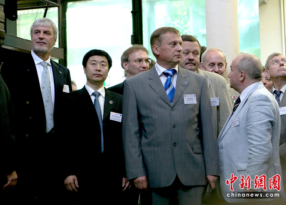 當(dāng)?shù)貢r(shí)間6月3日14時(shí),“火星-500”實(shí)驗(yàn)艙最后一道艙門關(guān)閉,人類歷史上首次模擬火星載人航天飛行試驗(yàn)就此拉開帷幕。圖為中國(guó)航天員科研訓(xùn)練中心副主任白延強(qiáng)(左二)在進(jìn)艙儀式上。中新社記者 田冰 攝