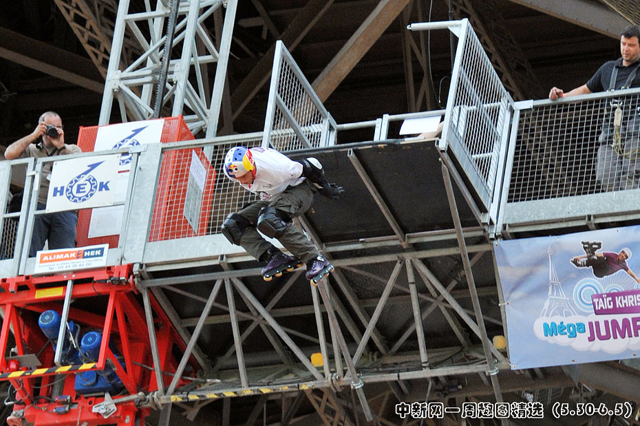 5月29日,法國巴黎,法國極限直排輪冠軍克里斯(Taig Khris)從法國艾菲爾鐵塔跳下,創(chuàng)下世界新自由落體紀(jì)錄。圖片來源:中國新聞網(wǎng)>>點(diǎn)擊觀看詳細(xì)內(nèi)容