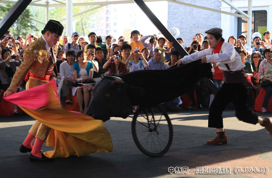 新近,上海世博園區(qū)里的各種趣味演出連連,西班牙斗牛士與一頭假公牛相互角逐,讓眾多游客樂(lè)開(kāi)懷。圖片來(lái)源:中國(guó)新聞網(wǎng)>>點(diǎn)擊觀看詳細(xì)內(nèi)容