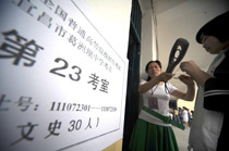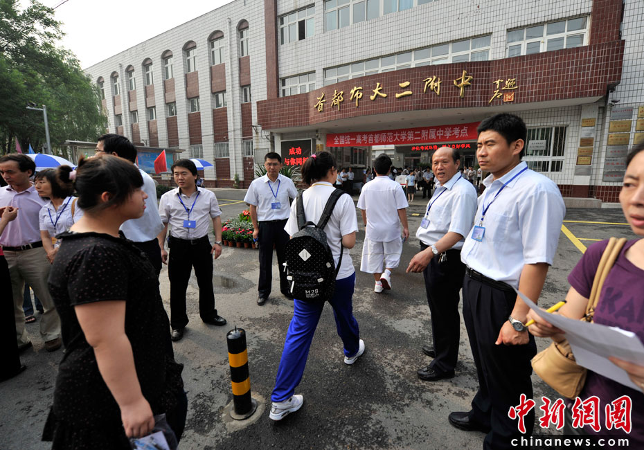 2010年全國(guó)高考6月7日日拉開(kāi)大幕,957萬(wàn)考生走進(jìn)考場(chǎng)。由于報(bào)名人數(shù)減少,而招生計(jì)劃增加,教育部預(yù)計(jì)今年全國(guó)高考平均錄取率將會(huì)增加近7%。圖為首都師范大學(xué)第二附屬中學(xué)考點(diǎn)。中新網(wǎng)記者 金碩 攝