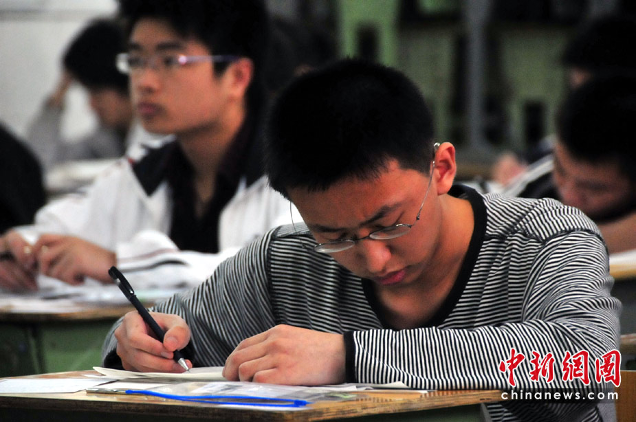6月7日,為期兩天的2010年普通高等學(xué)校招生全國(guó)統(tǒng)一考試開(kāi)考,全國(guó)將有957萬(wàn)考生走進(jìn)考場(chǎng)。圖為考生在答題。中新社發(fā) 李向雨 攝