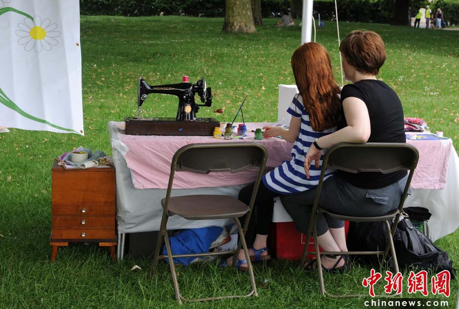 當(dāng)?shù)貢r(shí)間2010年6月6日,英國倫敦舉行卡姆登綠色市集(Camden Green Fair),這是英國倫敦每年環(huán)保領(lǐng)域的“重頭戲”。本屆市集的主旨是要喚起大眾對環(huán)境問題的關(guān)注,選擇更加可持續(xù)發(fā)展的生活方式。據(jù)活動主辦方預(yù)計(jì),本屆市集將吸引來自英國各地和世界各國的2萬多人參加。圖為一對母女在做手工。桌子上的老式縫紉機(jī)讓人有重回舊時(shí)光的感覺。Fiona/攝 Fiona 馬小剛/文