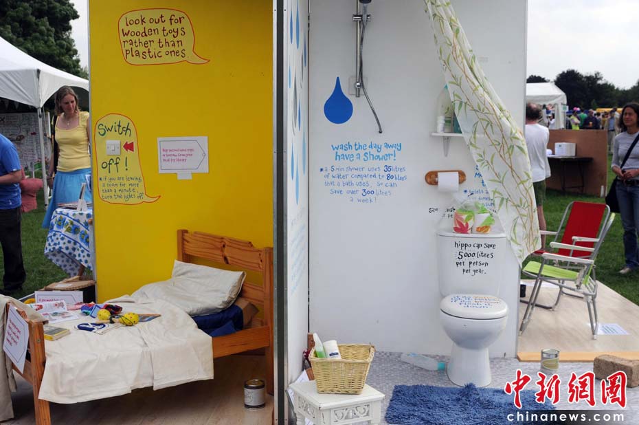 當(dāng)?shù)貢r(shí)間2010年6月6日,英國(guó)倫敦舉行卡姆登綠色市集(Camden Green Fair),這是英國(guó)倫敦每年環(huán)保領(lǐng)域的“重頭戲”。本屆市集的主旨是要喚起大眾對(duì)環(huán)境問(wèn)題的關(guān)注,選擇更加可持續(xù)發(fā)展的生活方式。據(jù)活動(dòng)主辦方預(yù)計(jì),本屆市集將吸引來(lái)自英國(guó)各地和世界各國(guó)的2萬(wàn)多人參加。圖為“家”的模型,共分為四部分:客廳、兒童臥室、衛(wèi)生間、 廚房。設(shè)計(jì)的每個(gè)小細(xì)節(jié)都體現(xiàn)出設(shè)計(jì)者“讓生活更美好”的理念。Fiona/攝 Fiona 馬小剛/文