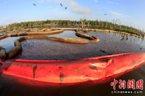 韓國首枚運(yùn)載火箭“羅老”號6月9日將再次發(fā)射升空。羅老號曾于去年8月25日第一次發(fā)射升空,但由于衛(wèi)星保護(hù)整流罩未能分離,最終未能進(jìn)入正常軌道。圖為6月7日,韓國“羅老”號運(yùn)載火箭運(yùn)往全羅南道羅老航天中心。